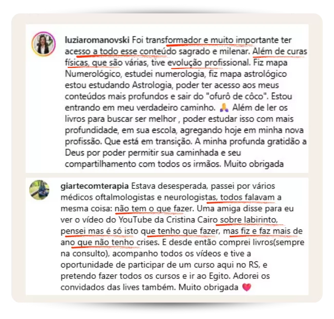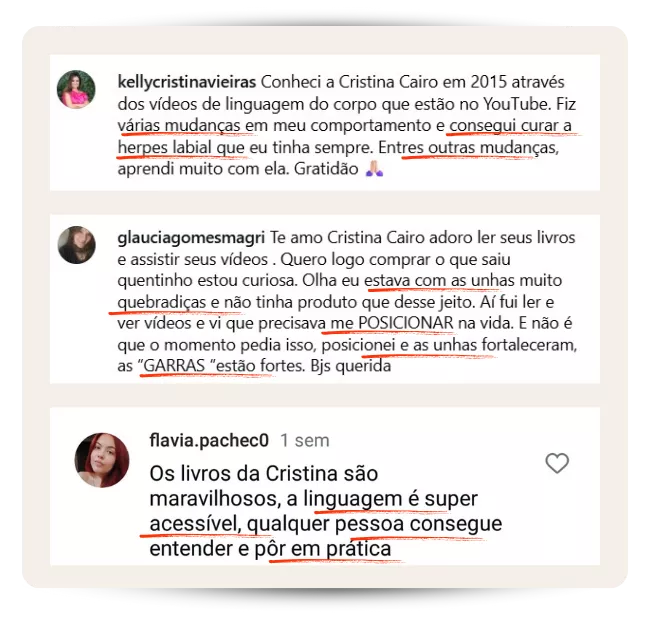 Porque é a primeira vez que a Cristina Cairo organiza todo o seu conhecimento em um formato estruturado, didático e 100% online. É o único curso oficial Linguagem do Corpo - Método C.A.I.R.O., com acesso direto aos ensinamentos milenares egípcios da Linguagem do Corpo.