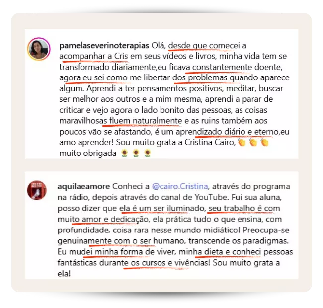 Ao longo de 5 módulo + conteúdo extra, Cristina Cairo vai te guiar para: