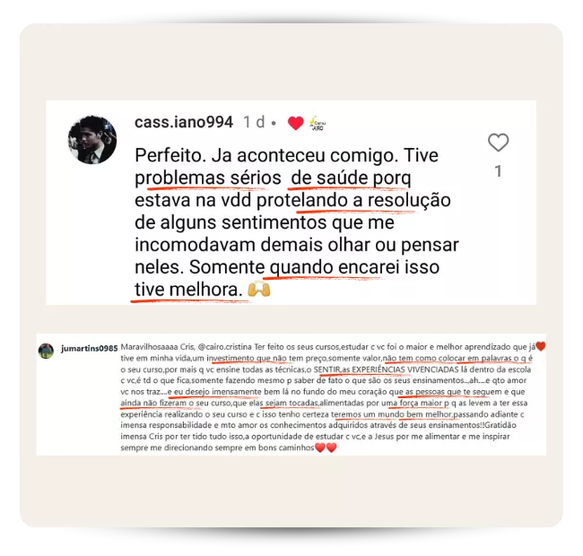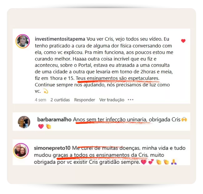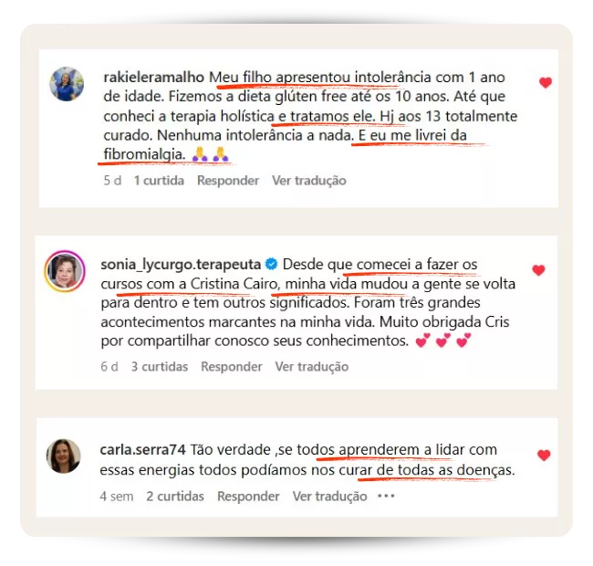 Sempre recomendamos que você mantenha seu acompanhamento médico e utilize o curso como um aliado poderoso no seu processo de equilíbrio emocional, expansão de consciência, regeneração celular e bem-estar físico e espiritual.