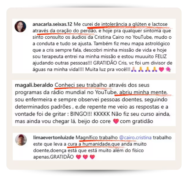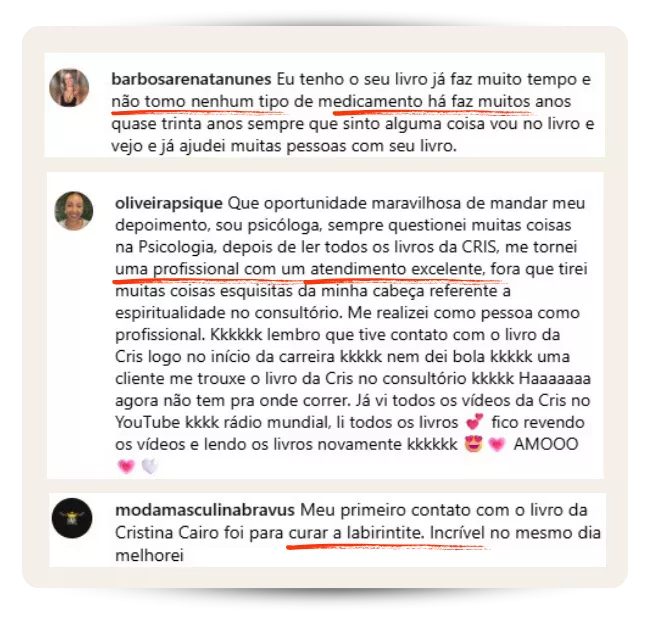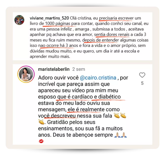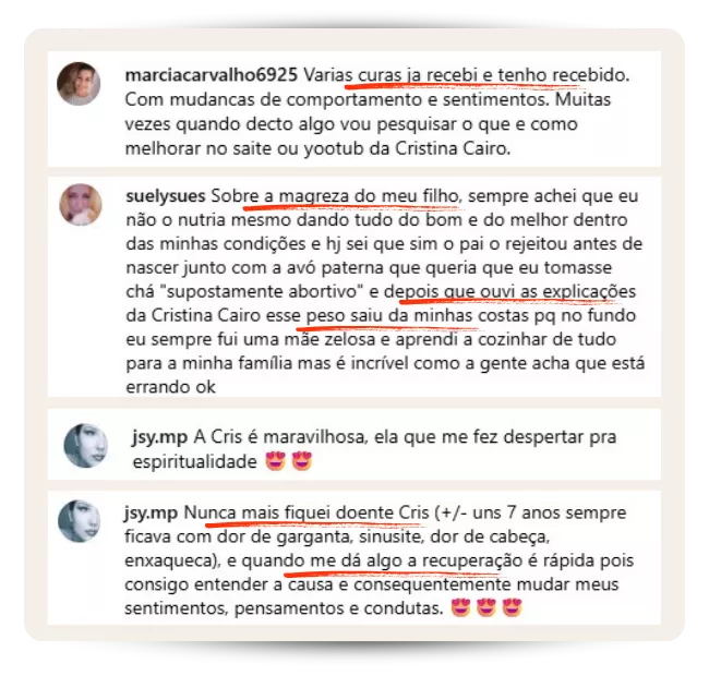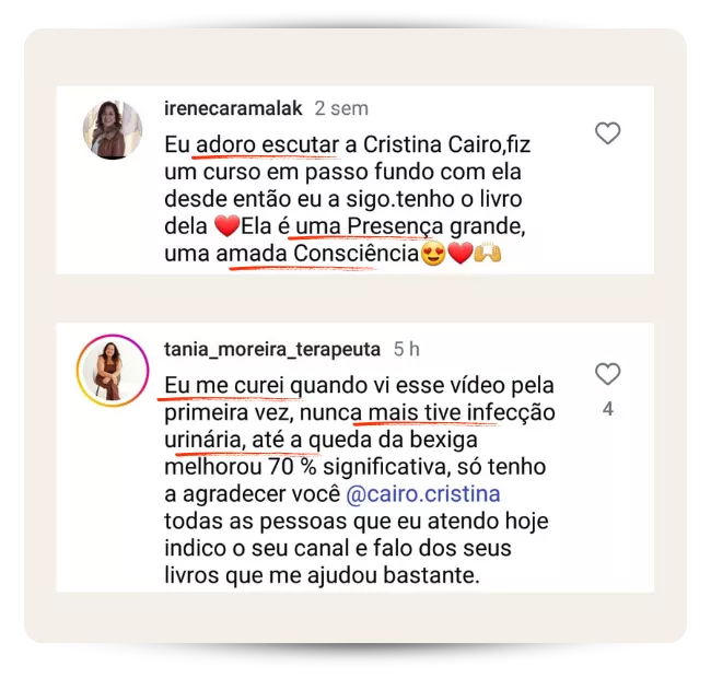 Aviso Legal: As informações contidas neste curso têm caráter exclusivamente educativo e não substituem diagnósticos, tratamentos médicos ou acompanhamentos psicológicos. Os resultados podem variar de pessoa para pessoa. O conteúdo apresentado é baseado na experiência, estudos, dados estatísticos e metodologia da autora Cristina Cairo e deve ser utilizado com responsabilidade e discernimento. Sempre consulte profissionais de saúde adequados para situações médicas ou emocionais específicas.