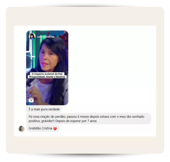 Se você sente que certas dores ou doenças se repetem sem explicação, ou que suas emoções afetam diretamente sua saúde, este curso vai te ajudar a entender e transformar essas experiências. E, para sua tranquilidade, oferecemos garantia de 7 dias após a compra para você testar e decidir com segurança.
