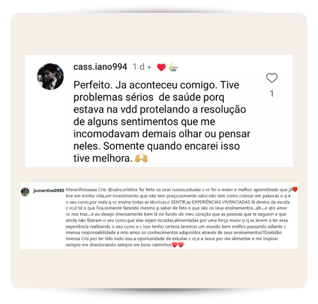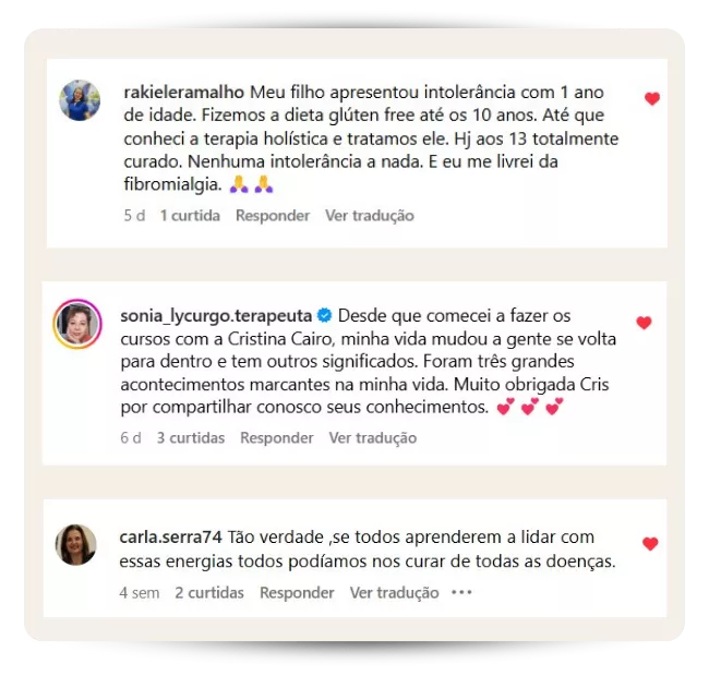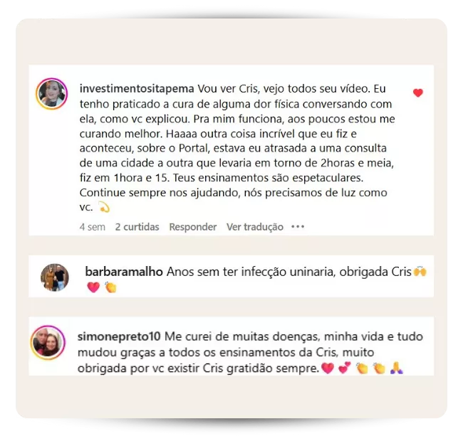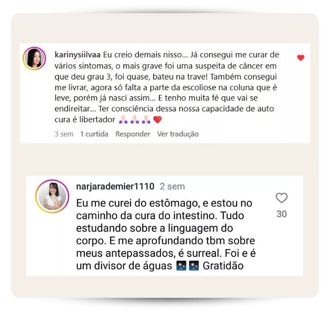 Sempre recomendamos que você mantenha seu acompanhamento médico e utilize o curso como um aliado poderoso no seu processo de equilíbrio emocional, expansão de consciência, regeneração celular e bem-estar físico e espiritual.