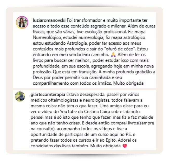 Porque é a primeira vez que a Cristina Cairo organiza todo o seu conhecimento em um formato estruturado, didático e 100% online. É o único curso oficial Linguagem do Corpo - Método C.A.I.R.O., com acesso direto aos ensinamentos milenares egípcios da Linguagem do Corpo.