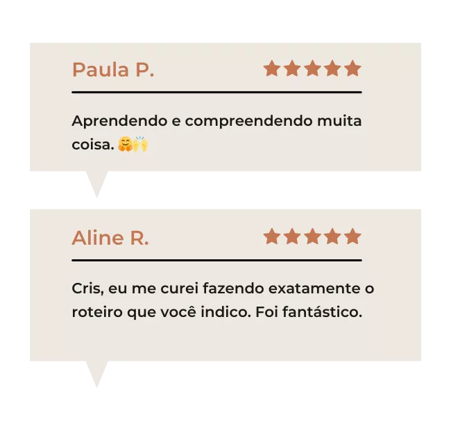 É um curso 100% online, gravado, que você pode assistir quando quiser, no seu ritmo, de onde estiver. Você terá acesso imediato após a compra e poderá revisitar as aulas sempre que desejar. É como ter a Cristina Cairo na sua casa, te guiando.